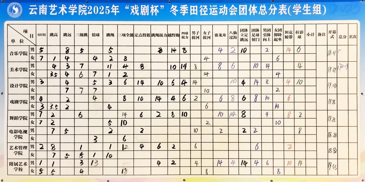 12月4日至5日,2025年“戏剧杯”学生冬季田径运动会暨教职工趣味运动会在全校师生的热切期待中盛大举办并圆满落幕。历时两天的赛事不仅是对全校师生身体素质与运动技能的一次全面检阅,更是一场展现艺院人精神风貌、凝聚校园向心力的体育盛会。