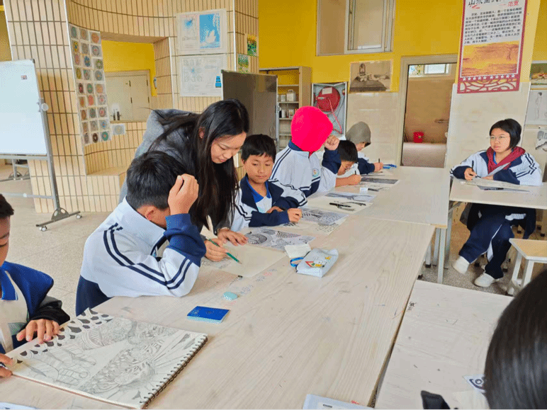 最难忘的是前往村小巡回授课的经历。蜿蜒的山路那头,孩子们对艺术充满渴望。当他们拿起画笔,在纸上尽情挥洒时,眼中闪烁的光芒让我更加确信:美育的阳光应当平等地照耀每个孩子,无论他们身在何处。
