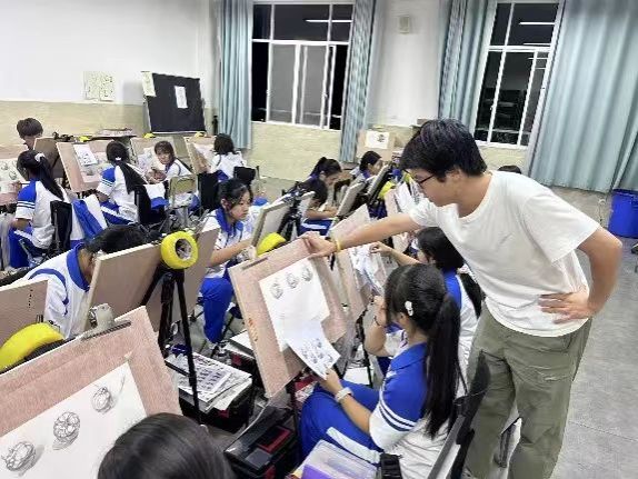 我很快融入了“轮班助教”的节奏,每当有老师轮休,我便走进画室,接过指导的接力棒。从素描的严谨结构,到速写的生动捕捉,再到色彩的微妙调和,在与学生们共度的每一个晚自习里,我目睹了专注如何点亮眼眸,汗水如何浸润画纸。我不仅是知识的传递者,更是他们拼搏岁月的见证者,我们共同剖析一幅幅作品,话题有时超越技巧,触及梦想的忐忑与坚持的勇气。在这份亦师亦友的陪伴中,我深切体会到,教育的影响力正在这些具体而微的互动瞬间。