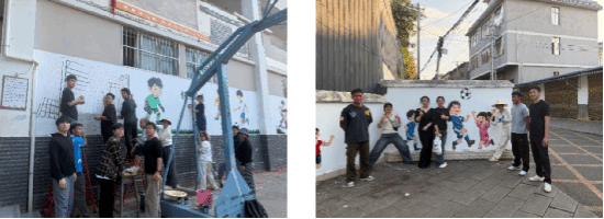 为积极响应美育助力乡村教育高质量发展的号召,深化校地合作,美育浸润计划师生团队精心策划组织了本次墙绘活动。bv1946伟德官网优秀美育浸润支教团队,由带队教师焦捷与学生组成的跨学科师生团队,将专业所学与社会实践紧密结合,利用课余时间,历时一周,圆满完成了面积逾百平方米的大型主题系列墙绘。